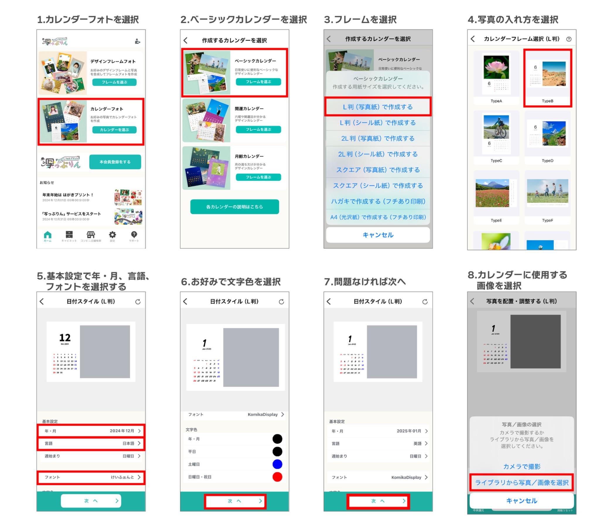 ここからは、カレンダーフォト機能からベーシックカレンダーの作り方を実際に作ったカレンダーをもとに説明します♪