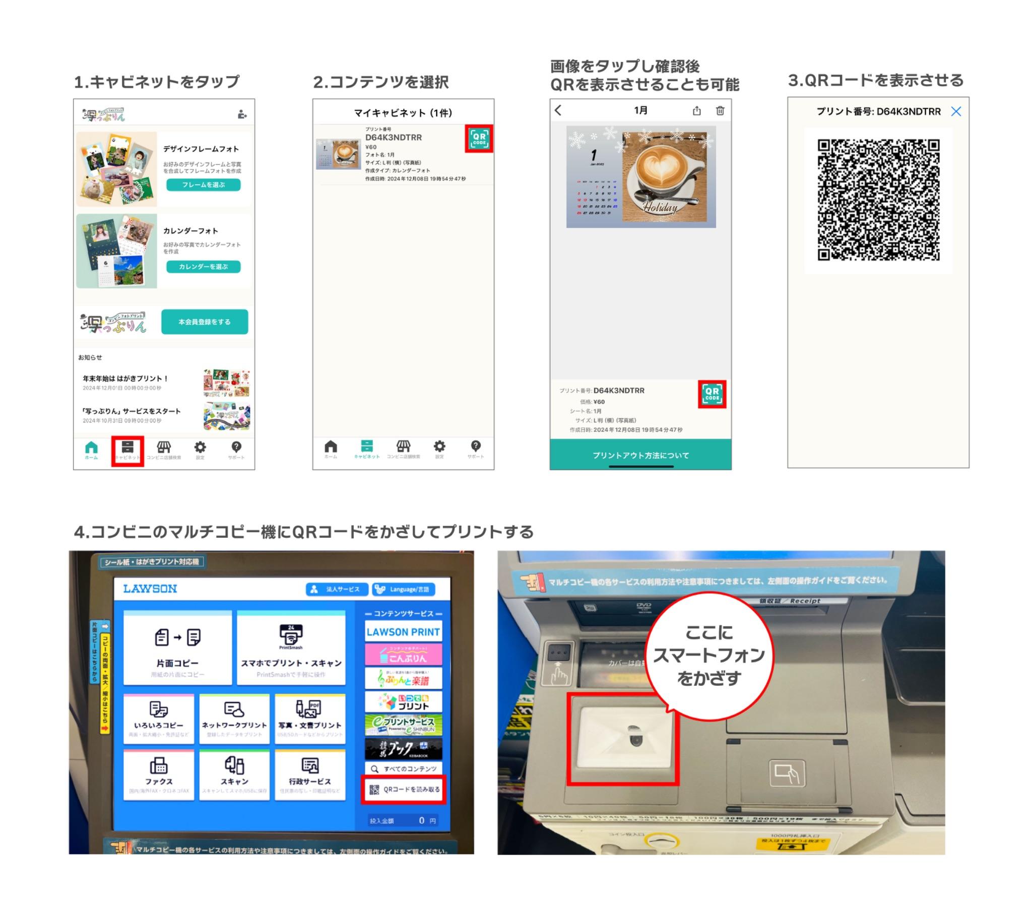 作ったコンテンツは、コンビニ(ローソン・FamilyMart・ミニストップ)のマルチコピー機で印刷が可能です。
