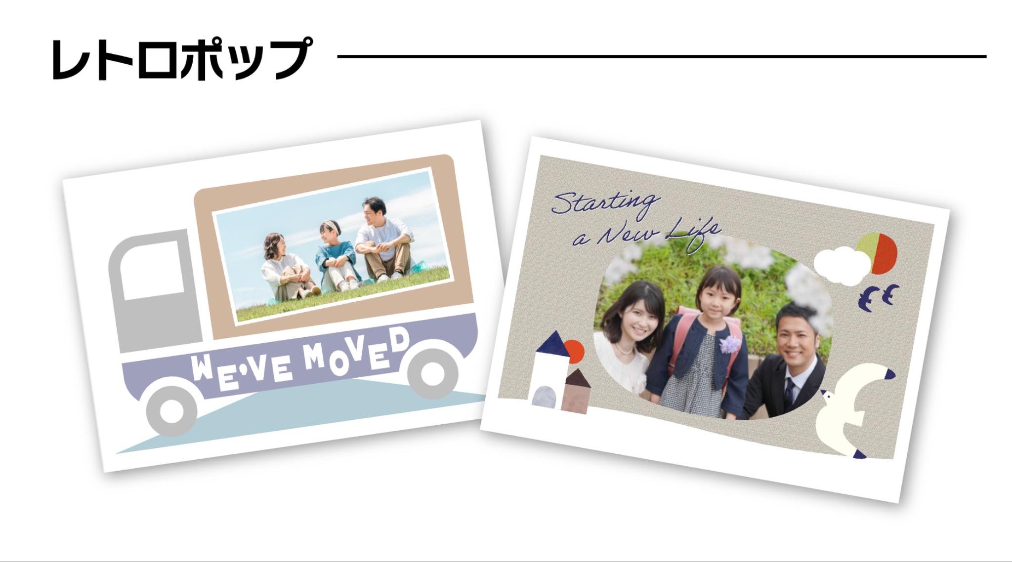 さて、今回は写っぷりんでできる「デザインフレームフォト」のハガキの中からこの季節にピッタリの「転居ハガキ」についてご紹介します!