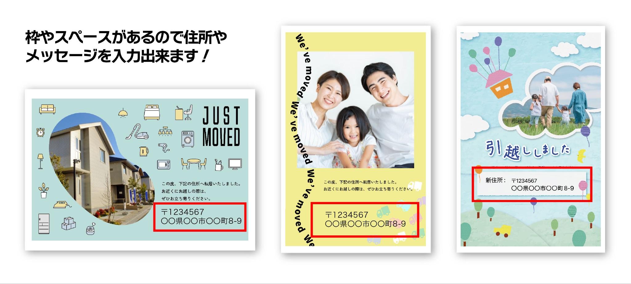 また選択するデザインによっては新しい住所を書き込めるスペースがあるので、住所を入力して配置すれば後から手書きする手間が省けます♪