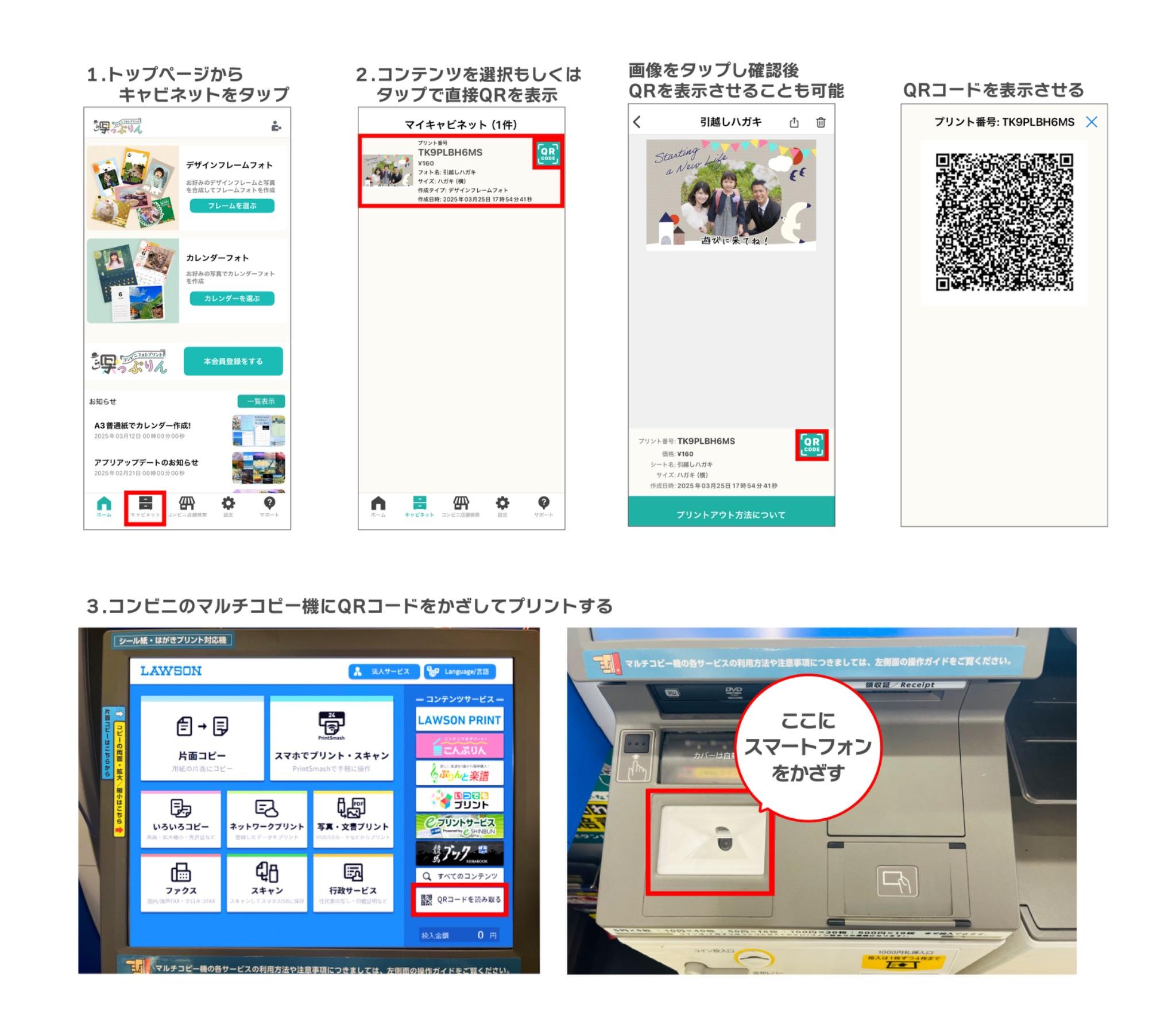 作ったコンテンツは、コンビニ(ローソン・ファミリーマート・ミニストップ)のマルチコピー機で印刷が可能です。